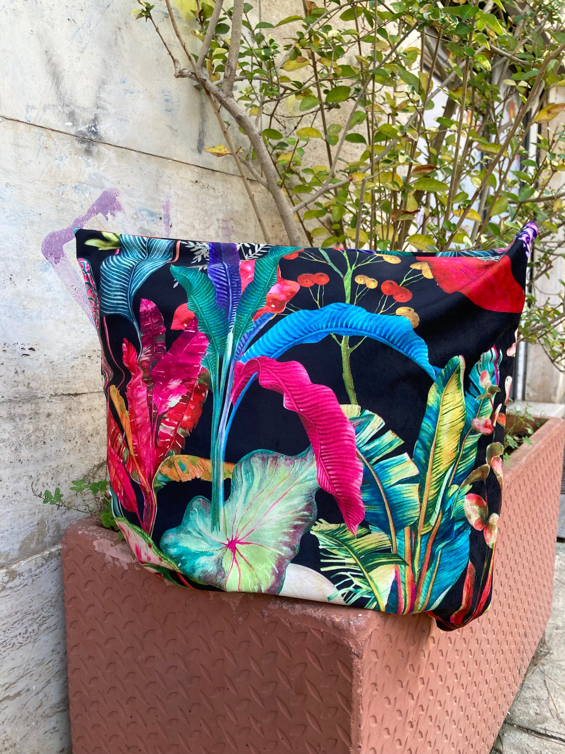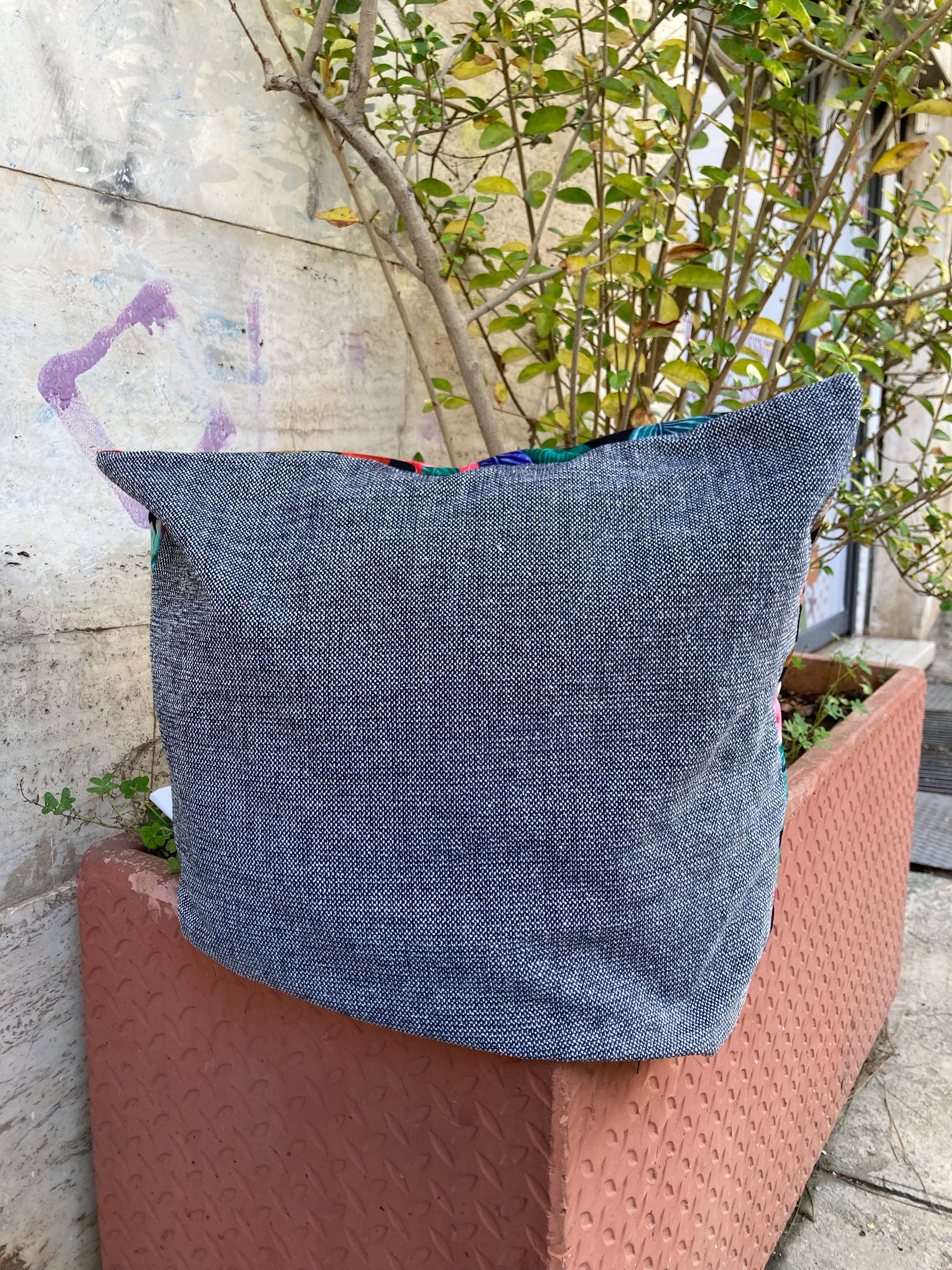 Cuscino in velluto di poliestere e tweed di cotone