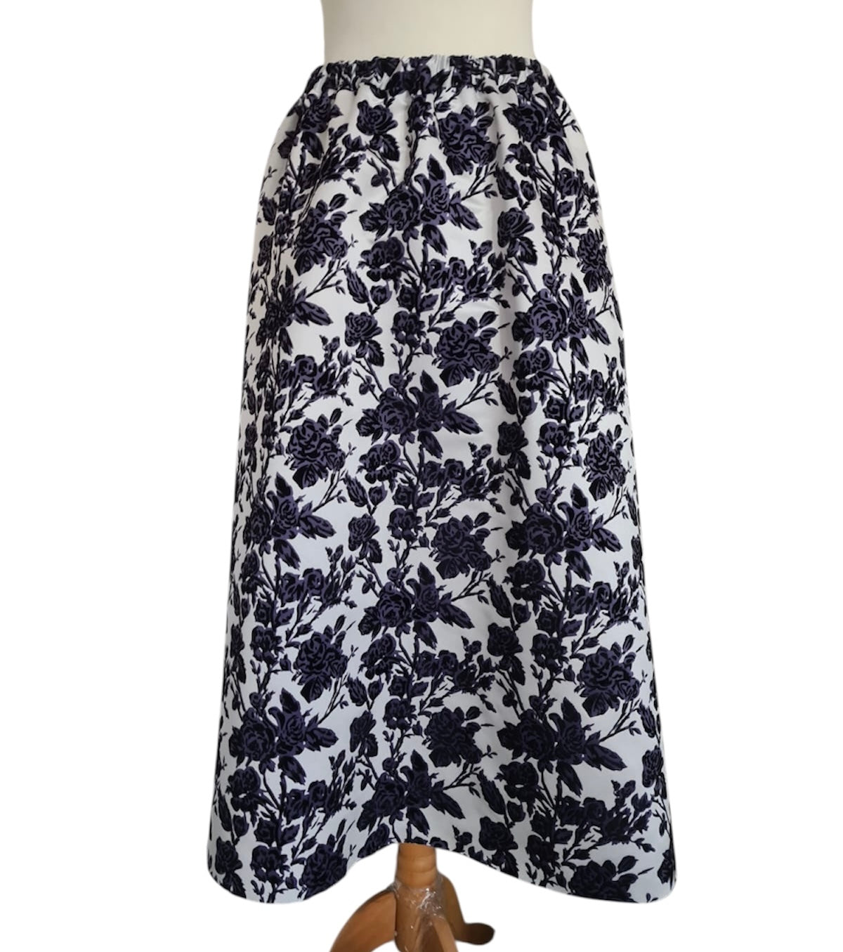 Gonna in raso floccato. 30% cotone, 20% viscosa , 50% pl
